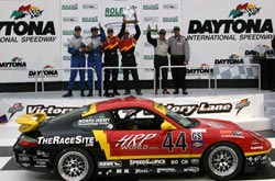 Posted (02/03/2004) - Daytona Beach, FL -- TheRaceSite.com Racing took home victory in the first Grand Am Cup race of the season at Daytona International Speedway. The team's #44 SpeedSource Porsche 996 driven by Craig Stanton and Terry Borcheller drove the car to victory for the team. "We are thrilled to have started the 2004 season off the same way we started our 2003 Championship season, with a win," commented an ecstatic Mike Thomas, Crew Chief of the team's fleet of three Grand Am Cup Porsches. "The race was one of fuel strategy. We split our chances mid race and we splashed the #44 Porsche for fuel at the end of the yellow and left the #43 out there for track position hoping for more yellows. There were no more yellows and Terry ran to the end and the #43 had to splash for fuel." For Stanton and Borcheller it marked their first win in their first race with the team and their first race as co-drivers. "The Grand-Am Cup race was a great start to what I think will be a good year," remarked Stanton minutes after stepping off Daytona International Raceway's world famous victory podium. "The Nonnamaker/ TheRaceSite.com team has a lot of passion and focus. They know the race strategy of these events real well. Terry and I compliment each other in many areas to come up with, what I feel, is one of the best driver teams in the series. Terry and I have been friends for many, many years and this is the first opportunity that we have had to work together. So it is another goal that has been met on my list." The team's #43 Porsche took home fourth place after a late race splash for fuel. Defending Champions Joe and Wayne Nonnamaker were sharing the car. "Whether we win or one of our other cars win, the team still wins," commented Wayne Nonnamaker after the race. "We split our fuel strategy with the two cars and it was the #44's strategy that was the best for the race. Terry and Craig drove an excellent race and both got a well deserved win." The team's third entry, the #40 Porsche 996, took home ninth place. Will Nonnamaker finished the car for Joe Massessa. "Ninth place is a good start to the season," commented Nonnamaker. "Joe is new to our team this weekend but the entire team really enjoyed having him in our paddock. He drove a very good first stint. I think as the season progresses, Joe and I will be more and more in contention at every event." The Grand-Am Cup Series will travel next to Homestead-Miami Speedway for the Grand-Am Cup 250, March 27-28. The Daytona 250 will be broadcast on SPEED Channel on Saturday, February 14 at 4 p.m. TheRaceSite.com Racing's title defense of the Grand-Am Cup GS class is a reality due to support from HRPworld.com, TheRaceSite.com, Hawk Performance, Kempthorn Auto Mall, SpeedSource, TheRaceMarket.com, K&N Filters, Infinity2, Bob Bondurant Driving Schools, North Jersey Dermatology Center, Grassroots Motorsports Magazine and 9 Magazine. |