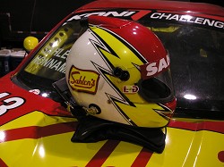 Posted (06/01/2008) - "After watching the Team Sahlen race cars over the past 4 seasons, you would expect nothing else but Lighting bolts from the helmet of Joe Sahlen. "When we went to design my helmet, I wanted to have the Lighting bolts as the main theme to the helmet." Joe Sahlen said of his helmet, "Grand American race fans have grown accustomed to associating the distinctive yellow bolt to the Sahlen race team." Joe Sahlen started racing in 2005, driving a Porsche 911 in the Grand Sports class, in what is now the KONI Challenge Series. Joe drives a Chevrolet Corvette in the ROLEX Grand American GT class with his co-driver Will Nonnamaker. Joe also currently competes in the drive in the KONI Challenge Street Tuner class. For 2008, Team Sahlen traded in their Dodge SRT-4 for a Mazda RX-8 in the ST class. "Across the front of the helmet, we had soccer balls, in shadow design, painted into the helmet. The soccer balls are tribute to our Sahlen Sports Park in Buffalo, New York that our daughter Alex Sahlen assists in managing" - states Joe (www.sahlensportspark.com) "And on each side of the helmet is the Sahlen's logo. The logo is exactly the same as when the company was created in 1869. Plus, in little shadow designs is the Sahlen logo across the back." In addition to supporting and racing in the Grand American ROLEX and KONI series, Sahlens is also involved in sponsoring both the Sahlen's 6 Hours of the Glen and the Sahlen's Paddock Club. "I really enjoy Grand American racing. The weekends are very professional, and yet fun at the same time. It's always fun getting to meet the fans at each track; especially at the autograph sessions. Often we meet fans who are long time loyal Sahlen Hot Dog eaters, and follow our team just because of that reason!" follow up Joe Joe Sahlen's helmet was painted by Tony Lechner of www.Lechnerracingdesigns.com . Tony has also painted the helmets of Joe, Wayne and Will Nonnamaker. Lechner Racing Designs are not cluttered but elegant, and as individual as the driver. A race fan knows instantly who's helmet it is by the distinctive design. Lechner Racing Design works to develop and produce a product as individual as the person using it, with the goal of making the driver instantly recognizable. |