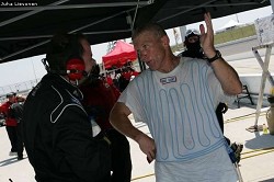 Posted (06/15/2009) - For the 4th Straight season, Team Sahlen is utilizing COOL SHIRTS Portable Cooling Systems in their Grand American ROLEX Series Chevrolet Corvettes. "When we used to race Acura Integras and Porsches, the heat in the cars was intense and would really have in impact on the driver over the course of a race. This is especially true since our form of auto racing is Endurance Sports Cars Racing. Sometimes a driver can be in the car for up to 2 hours at a time during our long races that can last as long as 24 hours." - states Will Nonnamaker "But then we started racing Chevrolet Corvettes, and we found out a whole new level of intense heat. You have the heat from the transmission and drive shaft to your right, the heat of the exhaust to your left, and the motor just in front of you. SPEED TV even shared on air that our Driver Cockpit areas were the hottest on the grid. So thanfully, we had our COOL SHIRT System. We utilize both the COOL SHIRT. Now after having experienced the COOL SHIRT system, I wish we would have went to this even when we raced the Acuras, for the benefits in driver durability during a long event." - states Wayne Nonnamaker The History of COOL SHIRT starts with its Founder, Rich Shafer, and his very non racing experiences with dealing with intense pressure in heated conditions. Rich spent countless hours in hospital operating rooms over 20 years selling implants to orthopedic surgeons. He discovered that doctors were overheating during long surgeries due to their protective surgical clothing. "I thought, 'Why not cool the doctors?'", Shafer said. So, he set to work developing a vest that would cool the skin by circulating temperature controlled cool water through tubing sewn to the cloth. In 1994, the first vest appeared in an operating room and Shafer has been a crusader ever since. The reason that he decided to use a vest with water circulating through it is because it has been shown that water cools the body 28 times faster than air. Think about how long it takes to cool off on a hot day when you jump into a swimming pool vs. sitting in an air conditioned room. Shafer is now president of Shafer Enterprises / Cool Shirt, a company that makes many different personal cooling systems for surgeons, race car drivers, industry, firefighters, hazmat teams, football players and other athletes. He preaches the gospel of the effects of body temperature on performance and why it's vitally important to keep the body cool in a hot environment. "NASA conducted a study that states when the temperature around you is 95 degrees for an extended period, people can make 60 mistakes per hour," Shafer said, "And they don't even realize it. When you perspire, almost half of your blood moves to the skin to produce moisture in the form of perspiration to naturally cool the body. The heart is pumping up to 150 beats per minute with less volume to get the blood to the skin. That means the rest of your organs, including the brain and your muscles, are only operating on half the blood they normally need." The same NASA study further showed that by reducing the temperature by just 5 degrees the number of mistakes is reduced to an average of 9 an hour. The human body is very unique on how it deals with heat. All of us are subject to heat stress when we work in a hot environment. The average skin temperature of the human body is between 91° and 92° Fahrenheit. An interesting fact is that when the temperature around us is 70°, about 4% of our total blood supply is going to our skin to release heat. When the temperature around us goes above 70°, we start to sweat to release body heat. Up to 48% of the blood supply flows to the skin to open the pours and produce sweat. This is almost half of your total blood supply which means that now your brain and other vital organs are operating on half of what is needed to function properly. There are four ways to lose body heat when the temperature runs too high. Radiation occurs when the outside temperature becomes lower than the body temperature. Convection is heat loss through air and water vapor that must be a lower temperature than the skin. Conduction transfers heat from warmer to cooler by contact. Evaporation is the cooling effect that occurs when a liquid turns to a vapor and leaves a surface as when perspiration evaporates from the skin's surface. The beginning of heat exhaustion occurs when you lose 2 percent of your body weight through perspiration" says Shafer. Most drivers on a hot summer night will lose at least that much and it is easy to check, just weigh yourself in the morning and again at the end of the night. If you weigh 200 pounds and you lose four pounds at nights end, you are in heat exhaustion. When the temperature gets above 95 degrees, radiation, convection and conduction don't work and perspiration is all you have left and it doesn't work very well inside a driving suit. In fact, most race car interiors are 120°+ and if all you are doing to cool yourself is to blow outside air into the cockpit, then you may just be creating a convection oven to bake yourself in. When half the body's blood moves to the skin to produce perspiration, fatigue and poor decision-making become the greatest dangers to the body. One of the hot set ups currently is to blow cooled air into the helmet. While this may make you feel better it is not truly cooling the body's core. Most of the heat is stored in the trunk of the body, where all the organs are. Further, the body's thermostat is in the middle of the head and if the head is too cold it tells the body to start warming up even if it is already warm. Also remember what was said earlier about water being the most effective way to remove heat from the body and since most of your perspiration is trapped inside your driving suit, the only good way to cool effectively is to get cool water inside your driving suit. Cool Shirt makes a shirt for race drivers that is similar to the vest for surg