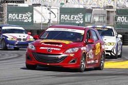 Posted (02/13/2010) - Having only received the freshly built MAZDASPEED3 from SpeedSource at the January Test Days, Team Sahlen had a very short time to get home and prepare the new Mazda racer for the 1st Continental Tires Series event of the year. With the short amount of time, Team Sahlen choose to leave the MAZDASPEED3 race car in the conveniently stock red. The focus by the crew was to work on enhancements to the race car from what was learned at the Test Days, and the Grand American rules adjustment after the Test Days. In the 1st Session of practice, Team Sahlen worked through some trial run tests with the Official Grand American Boost Monitoring system. In practice session 2, the team went to work on some set up opportunities. Then in the same day, Qualifying occurred. Team Sahlen struggled with a few handling issues in qualifying that placed the #43 in 32nd out of 36 in class. Then for morning warm up, Team Sahlen tried some new handling solutions, that saw the MAZDASPEED3 closer on pace. For the race, Joe Sahlen would handle the starting rotation duties. With the position of being in the far back of the pack, Team Sahlen chose the strategy of refueling under an early yellow caution period. Joe drove a very steady pace and handed the #43 Mazda over to Will Nonnamaker at the 29 Lap mark under caution. Will continued forward, gaining valuable development miles that would be useful for the season ahead. But more importantly, to the task at hand, Will continued passing ST and GS class racers, lap after lap, one by one. With 4 minutes to go in the race, the #43 Mazda was in 19th place in the ST class. Then an amazing thing happened, a more and more cars continued to have problems, propelling Team Sahlen all the way up to 13th in class. And with one more lap, Will might have ended up in 11th, as he was gaining 5 seconds a lap on the 11th and 12th place finishers. Amazingly, Team Sahlen also claimed 36th Overall out of 81 entrants. "This was a great start to the season. We came here to get valuable laps in further development of the MAZDASPEED3, and we accomplished that by running in every session, and running the entire race. The extra added bonus was fishing in 13th spot in our 1st race with the Mazda in the very full 36 car ST field. These points will be beneficial as the season rolls along." - states Will Nonnamaker The 2010 Team Sahlen ROLEX & CONTINENTAL Tires Series Campaigns will be supported by Mazda, Mazdaspeed, HRPWorld.com, HAWK Performance, Cool Shirt, Racetech Seats, BBS, Alcon, Mothers Polish, EMCO, TheRaceSite.com, Grassroots Motorsports, Holliday Canopies, Alcon, CM |