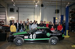 Also of interest during the tour was the most “Unique” Mazda in the shop,,a black 1986 Mazda RX-7 with Grass glued to the roof and hood. This Mazda was raced by Nonnamakers and several weekend warrior volunteers at the recent Chump Car 25 hours and 25 minutes race at Nelson Ledges Road Course. For those that are not aware, this type of racing is for $500 cars that you turn into race cars for minimal investment. There are over 80 of these events across the country, although this was the longest of those such events. In fact, this was actually the longest Endurance Event in North America. The Chump Car was such a group favorite, that as the Tour drew to a close, all the Mazda Enthusiasts gathered around the RX-7 for the group photo.