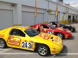 Posted (04/07/2016) - Team Sahlen inaugural event of the 2016 race calendar was the 14 Hour ChumpCar event at Daytona International Speedway. The Team had entered 3 Mazda RX-7s for the event: #141-Charcoal, #242- Ketchup & #243-Mustard. The drivers for the race would be Joe & Joseph Sahlen and Joe, Wayne & Will Nonnamaker. Set up and Tech were on Friday of the event. The day was beautiful, in the mid to high 70s. The day went very smoothly, with time to spare for a little photo opportunity in front of the garages at the end of the day. The weather on Saturday morning was not so nice. The skies were overcast and windy. As the cars rolled off the grid, the track was still dry. This left Team Sahlen with little choice than to leave the Mazdas on the shaved slick tires. As the pace laps started, so did the rain from the sky. At this point, Team Sahlen made a quick decision to pit all 3 cars for rain tires. Before pitting for tires, the Sahlen racers were rolling around in the random ordered grid in approximately 70th position. Out of a stroke of pure luck, as the Sahlen racers rolled from the pits, the race went to green, and the team moved up to 20th and 21st respectively. The rain was quite ferocious in the 1st 2 hours. And Team Sahlen was not immune to the deluge on the track. All three cars suffered off road and car to car contacts. Not related to any contact, #242 choose to go into limp mode. A cure was not able to be found at the track, and Ketchup was forced to retire before the 2 hour mark. Despite early incidents that led to stops in the pits and garages, both Mustard and Charcoal rolled along on track. At the 3 hour mark, #243’s hood let loose from the early incident, breaking the front windshield, but still kept rolling along in the Top 10. At the 5 hour mark, Mustard found itself in a multi car wreck that could not be avoided. This carnage was enough to put it out of the race for good. This left the honor of Team Sahlen in the hands of Charcoal to bring home a finish across the line in the 14 hour endurance event. All 5 Team Sahlen drivers took turns behind the wheel to bring the car home. The final result after14 hours was 33rd in the ChumpCar race, out of 100+ racers. Not a bad finish, considering about 1 and half were spent in the garage for repairs. To top off the respectable finish was an excellent 5th fastest race lap in the event. The next event planned for Team Sahlen will be the April 22nd – 24th Sahlen’s Sports Car Springfest at the Glen, with American Endurance Racing. This event will be dual 8 hour Endurance events on both Saturday and Sunday. Over 78+ entries are expected for this race event that will be the 1st on the new pavement at Watkins Glen International. 2016 Team Sahlen Campaign Partners: Tarett Engineering, Guard Transmission, Porsche of Beachwood, Pittsburgh International Race Complex, HubstandsPRO, Brothers Grimm Landscaping, NGK Spark Plugs, CM Racing Products, Mothers Polishes, Grassroots Motorsports Magazine, Design Engineering Inc., Hard Brakes, Alcon Rotors, Lamin-X, Optima Batteries, Mazdaspeed and TheRaceSite.com. |