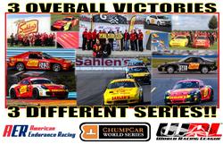 Posted (11/01/2016) - Team Sahlen entered the 2016 race season with grand plans to secure overall victories in three different endurance sports car series. The three series that would be the focus of this grand plan was American Endurance Racing, World Racing League and ChumpCar World Series. Each of these series has a season long schedules of events ranging from 7 to 24 Hours. Additionally, each series would have different rules and guidelines to car preparation and race structure. This different structures would keep the Team Sahlen crew and drivers on their toes all year long to adapt from series to series. To accomplish this grand plan, Team Sahlen would need an arsenal of race cars to take on this challenge. Three Mazda RX-7s and Three Porsche Caymans would be put into action throughout the season. Having 2 different types of races cars to prepare meant that the crew needed to be extra focused on their details when working from car to car. The Team Sahlen drivers also had the challenge of adapting to 2 distinctly different race cars. The Mazdas are mid horsespower, front engine rotary rockets. The Porsches are high horsepower, mid engine German Teutonic racers. The 1st race of the season for Team Sahlen was the ChumpCar 14 hours at Daytona. This event saw 125 race cars take the green flag. 3 of those race cars were Team Sahlen RX7s. Early rain downpour caused all three entries to face turmoil. In the end, the tried and true “Charcoal” Mazda came through for the finish, in 33rd slot. The next event for Team Sahlen was to be the World Racing League event at Mid-Ohio Sports Car Course. Unfortunately, a freak snowstorm that weekend caused the event to be cancelled. This put the 2nd event of the year to be the Sahlen’s Sports Car Springfest at the Glen with the American Endurance Racing Series. This dual 9 hour race event weekend saw a large 75 car entry for the season opener for the series. Team Sahlen entered their #41 & #43 Porsches for this event. On Saturday’s race, Team Sahlen fought hard, and secured 1st and 4th Overall. The Sunday race saw Team Sahlen lead significant portions of the race, to then end up just 20 seconds short of the victory, securing 2nd place. The 3rd event on the calendar was the Sahlen’s ChumpYard Dog at the Glen with the ChumpCar Series. This event at Watkins Glen International had 100 entries. For this event, Team Sahlen again entered 3 RX7s – Charcoal, Ketchup and Mustard. On Day 1 Team Sahlen fought hard and finished with a fine 7th and 15th on the day. Then on Day 2 Team Sahlen took the fight to the front of the field and led significant portions of the race, including the last 45 minutes of the race. Unfortunately, a long green flag run with no yellows saw the Ketchup entry run 5 minutes short on fuel. The Chumpcar Officials agreed with the cruel fate of the Ketchup racer by awarding Team Sahlen the “Tough Break” award. Team Sahlen then had a long summer break before the next race. This time period was put to good use to visit Mid-Ohio Sports Car Course for a Test & Tune day for the Porsches. As the season resumed in August, Team Sahlen competed in their very 1st World Racing League event. The “Black River Blast” event was held at Gingerman Raceway in Michigan. This track was also new to the Team Sahlen drivers, and they used the Friday test day to get up to speed. On the Saturday race, Team Sahlen raced hard all day through early showers and later afternoon sunshine. As the checkered flag flew, Team Sahlen secured 1st and 2nd overall in the race with their Mazda RX7s. On Sunday, Team Sahlen again had a very clean race, to lock down 3rd and 4th overall in the race. Later in August, Team Sahlen returned to Gingerman Raceway, this time for the ChumpCar “Cookie Cutter Classic”dual endurance events. On Saturday’s race, a torrential downpour saw all race cars struggling just to stay on the track. Team Sahlen’s Mustard battled hard, leading late in the race until fuel issues forced a pit stop, driving the result back to a 4th place finish. The Ketchup entry meanwhile came home in 11th. On Sunday, Mustard again secured a 4th place finish. But Ketchup bounced back in a big way and secured the Overall victory in the Chump Car race. The penultimate event on Team Sahlen’s calendar was the ChumpCar event at Pittsburgh International Race Complex. This event saw another large turnout of 50+ entries. Team Sahlen was competitive from the very start of the racing action on Saturday, leading with both the Ketchup and Mustard entries. A fine 3rd place finish was the result of Saturday’s action. Sunday’s race saw the same intense battle up front for the lead, with again both Ketchup and Mustard running in the lead back. Reminiscent of the Watkins Glen ChumpCar race, Team Sahlen was leading with 2 laps to go when a loose muffler shuffled the Mustard entry back to 3rd place. The final round of the season for Team Sahlen would be at Mid-Ohio Sports Car Course with the American Endurance Racing series. For this event, Team Sahlen entered 3 Porsche Caymans; #41, #43 & #44. This would be the 1st race for the #41 entry, and the team would experience teething issues for the Cayman in both Saturday and Sunday’s 8 ½ hour enduros. In Saturday’s race, the #43 Cayman would race hard in the front pack, leading much of the mid portion of the race. In the end the team would come up ½ short of the victory, finishing 2nd. On Sunday’s race, it would be the #44 Cayman’s turn to lead the charge. Despite a incident on track that broke the hood latches, Team Sahlen would again come home in 2nd place. As the season concluded, Team Sahlen had accomplished their goal: OVERALL Victories in 3 Endurance Sport Car Series. This trifecta achievement was both gratifying for the crew and had the team looking for more exciting victories come 2017. On an ironic side, the one thing that was constant for Team Sahlen all year long was Rain. At every event attended ther
