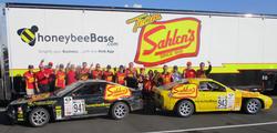 Race Weekend News Report & Quotes: Team Sahlen, presented by honeybeeBase.com, has one of their most amazing race weekends ever. The weekend started off on Friday with open practice. Mechanical issues with #942 “Ketchup” saw Team Sahlen pull #941 “Charcoal” out of the trailer and put into service for the race weekend. “Charcoal”, originally built in 2011, is considered the “old faithful” of the team’s racing stable. Despite having many, many, many race miles under its belt, the tried and true “Charcoal” always comes through for the team. The crew worked feverously into the evening to prepare the racer for action. During Saturday’s 8 hour race, Charcoal did not disappoint, setting a blistering pace, and setting fastest race lap along the way. In the final moments of the race, Charcoal was in 2nd place, charging hard for the overall win, when it ran out of gas with a lap to go. #943 “Mustard” was also in the thick of the action, securing a very well deserved 5th place overall and 1st in the B class. Despite this hiccup, “Charcoal” still secured 9th Overall and 2nd in the B class. Sunday’s 7 hour race saw everyone at Team Sahlen with high hopes in anticipation of contending for the Overall victory. On this day, #943 “Mustard” was up to the challenge, and after 6 hours of racing, the Rotary Rocket was on the lead lap behind the leading red BMW. Wayne Nonnamaker was behind the wheel, and stayed with the leader for the next 45 minutes. Then a full course caution came out, setting up for an epic 4 race dual. When the race went back to green, the lead exchanged hands several times. As the cars raced to the checkered flag, #943 “Mustard was in the lead, with the red BMW charging hard. The Rotary Rocket had just enough to squeak out the win by 4 feet. With the Overall victory, #943 “Mustard” also secured the clean sweep of both Class B wins for the weekend. Wayne Nonnamaker shared his enthusiasm after the race – “Wow, in all may years of racing, that has to be one of the most thrilling races that Team Sahlen has ever been in. To race for 7 hours and to come down to 4 feet is amazing. Joe Sahlen drove a fantastic race all day, setting down monster laps to keep us right in the lead pack. And the crew had great pit stops, keeping us in the pits for the minimalist of time. Just amazing to walk away with this Overall victory.”